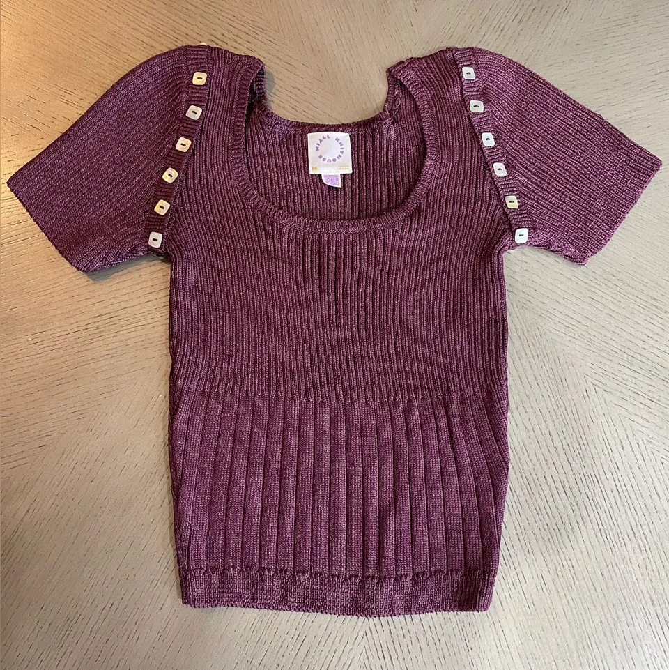 NIALL KNIT HOUSE Purple Short Sleeve Sweater Top with Button Accents size M Size M - $32 - From Edith