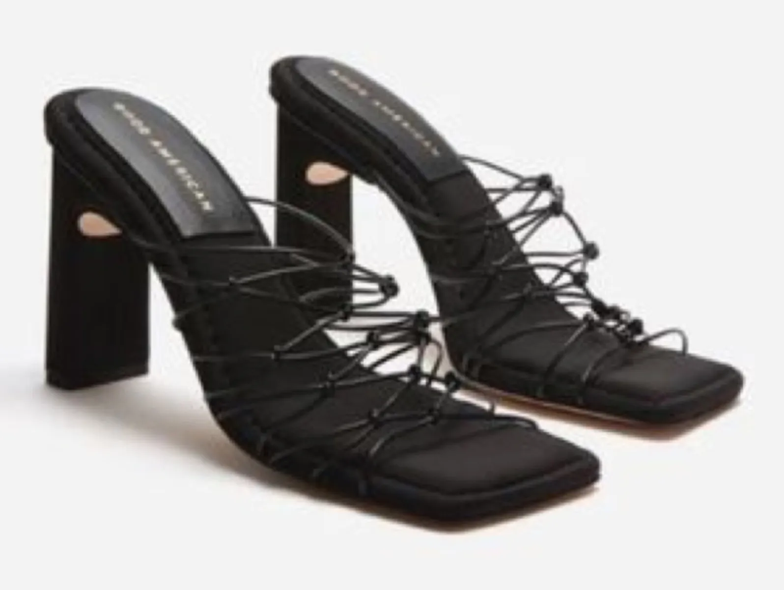 NIB Good American Black Strappy Square Toe Mule Faux Leather Sandal 7 Features: -Slide on -Strappy... Show more