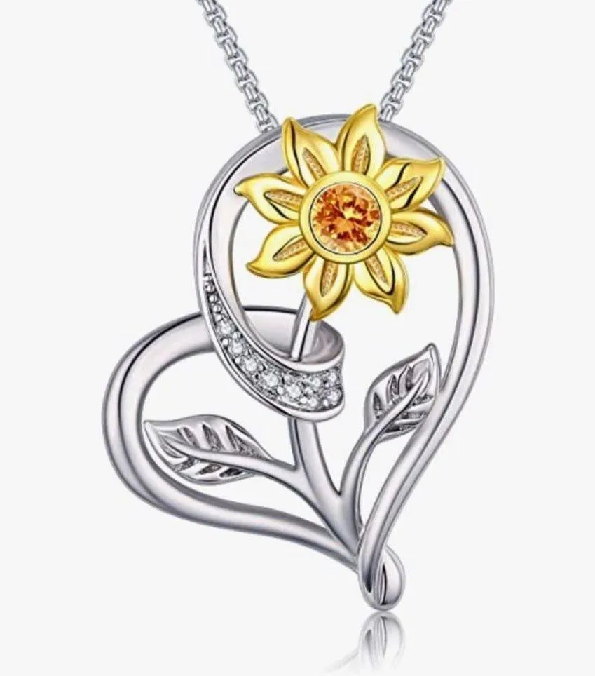 KLURENT FLOWER & HEART PENDANT NECKLACE Silver Heart 14K Rose gold plated pendant w/ a 5a cubic zir... Show more