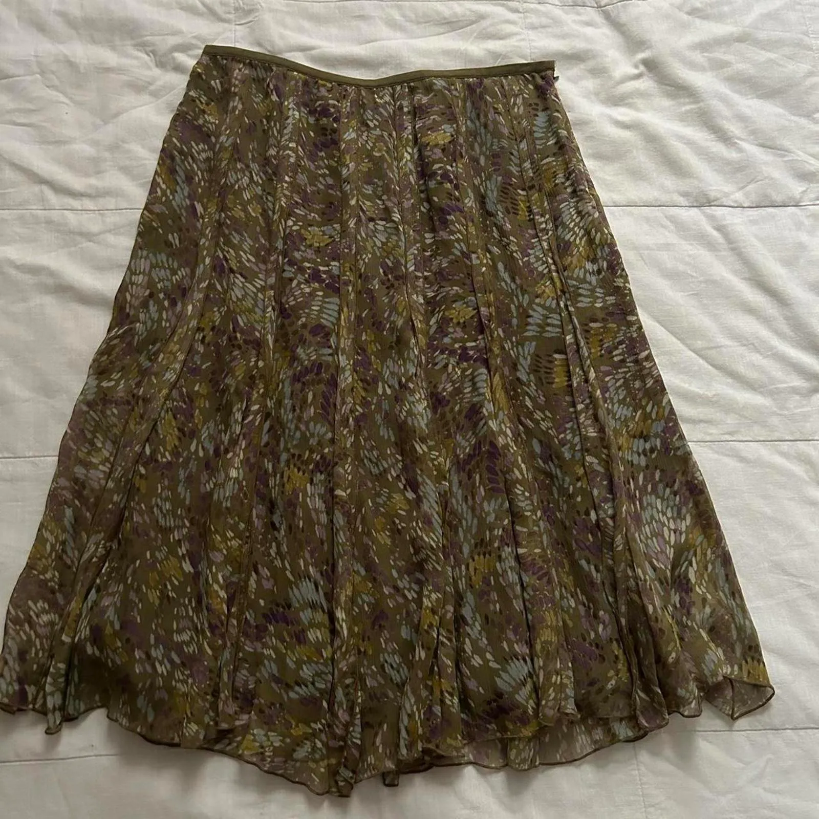 Nic and Zoe silk Olive green midi skirt with purple blue floral pattern Size 10 - $35 - From Killah