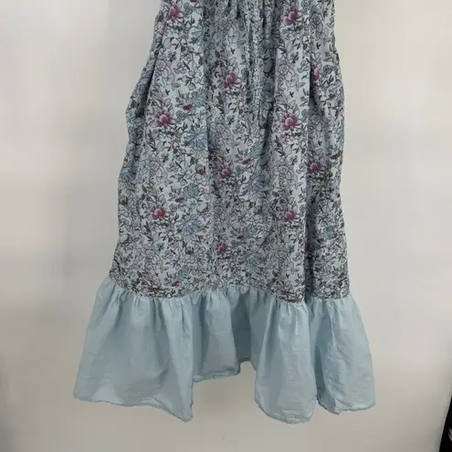 Captivating with its whimsical charm, this Nick & Mo midi dress paints a picture of effortless summer beauty. Delicate spaghetti straps gracefully lead to a flattering V-neck bodice, adorned with a subtle textured print. Below, a vibrant tapestry of floral blooms in shades of lavender and berry dances across the skirt, creating a visual delight. The empire waist cinches gently with a tie-back detail, offering a customizable fit that flows into a gracefully tiered silhouette. A playful ruffle hem adds a touch of flirtatious movement, making this dress perfect for a sun-drenched picnic, a casual garden party, or a charming weekend brunch. Style: Sundress, Fit & Flare Dress Length: Midi Department: Women Sleeve Length: Sleeveless Pattern: Floral Occasion: Casual Material: Cotton Fabric Type: Woven Theme: Flower, Nature Neckline: V-Neck Garment Care: Machine Washable Features: Size zip, adjustable straps, tie waist Excellent preowned condition - no rips, stains, or tears. From a smoke free, pet friendly home. Approximate measurements in photos. Seller Notes: -Same/Next Business Day Shipping -Smoke Free & Pet Friendly Home Keywords: Nick and Mo, midi dress, floral print, ruffle hem, spaghetti strap, summer dress, boho, feminine, cottagecore, garden party, brunch, casual