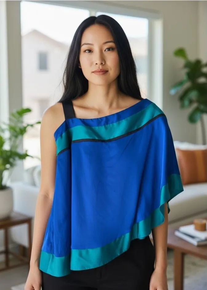+++GOOD CONDITION+++ ****Reasonable offers are welcomed**** Before you buy a garment, please ask me any questions you may have and I will immediately answer them. Take a look at all the photographs of the listing. I can share more photographs and/or more information, just send me a message, here to help. I ship the same day with no exceptions depending on what time the order comes in :) Top to bottom = 27 inches Armpit to armpit = 18 inches This striking asymmetrical skirt from Nicole by Nicole Miller effortlessly combines style and comfort. The vibrant blue and teal design adds a pop of color to your wardrobe, while the flowing silhouette creates a graceful movement. Perfect for those seeking a unique piece that stands out, this skirt offers both versatility and flair. In the last photo, you can see a small flaw on the garment.• Asymmetrical hemline • Concealed back zipper • Lightweight fabric • Color-blocked design