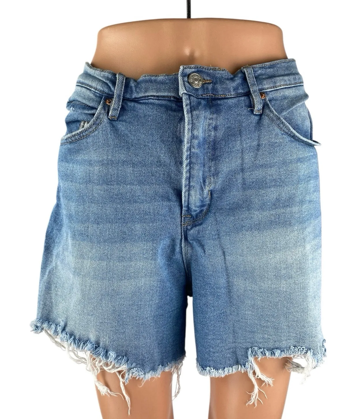 Nicole Miller Blue High Waisted Frayed Hem Wide Leg Denim Boyfriend Shorts Size 12 Size: 12 Conditi... Show more