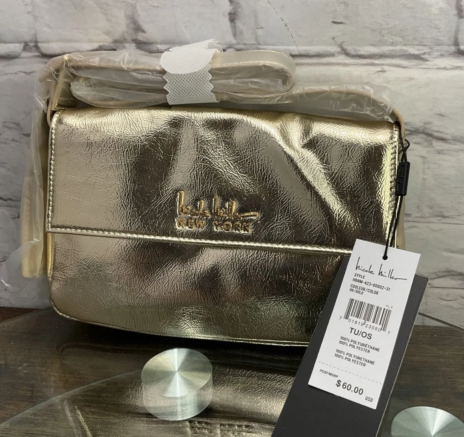 The Nicole Miller Gold Vegan Leather Handbag Shoulder Bag is a stylish and elegant accessory for wom... Show more