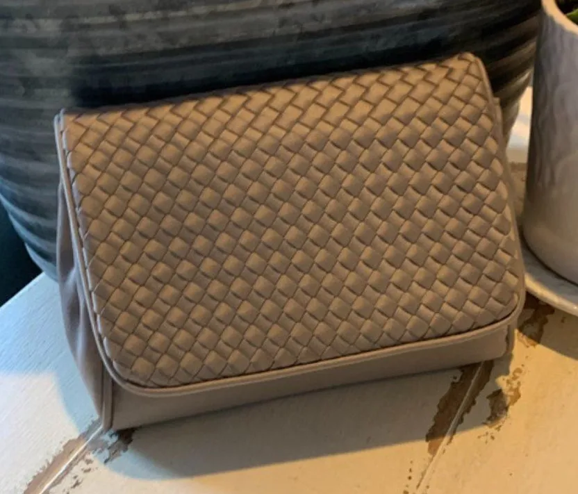 Beautiful neutral color, zipper pocket inside *** there is a shoulder strap but it is missing a sna... Show more