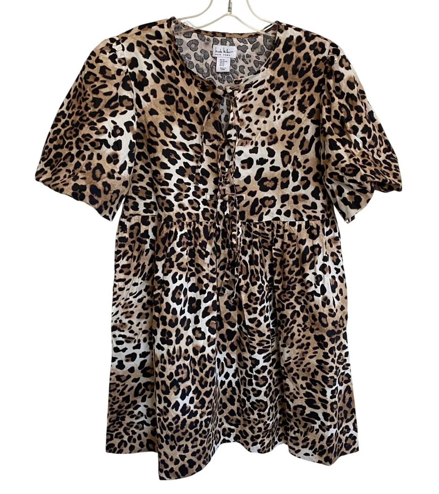 NEW NICOLE MILLER leopard mini dress bows puff sleeves cotton Nicole Miller size XS New without tag... Show more