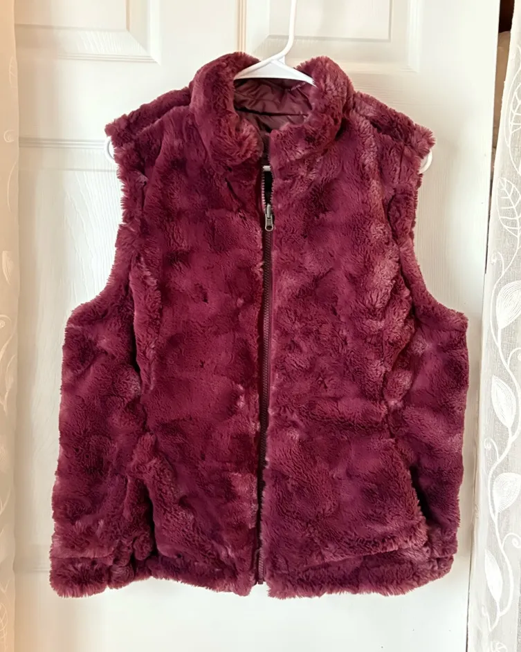 Nicole Miller Original Reversible Vest Wine Red Faux Fur Quilted Womens sz L Size L - $39 - From Yueyue