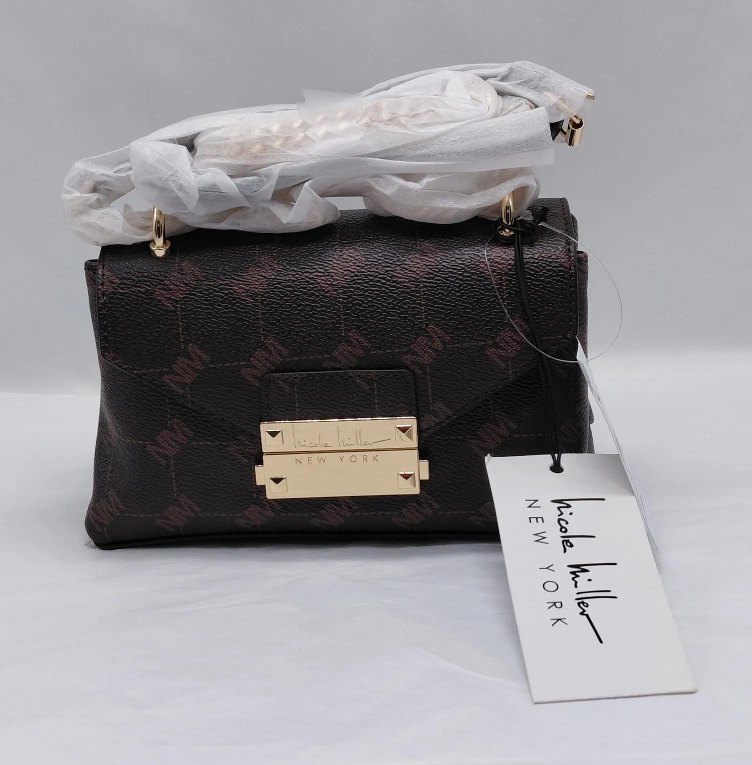 Nicole Miller Women's Small Crossbody Shoulder Bag Purse Brown Wedding Guest Cocktail Party Church S... Show more