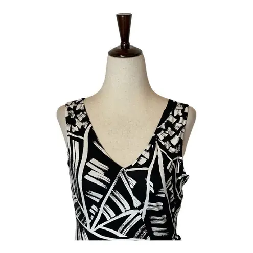 This dress from Nic+Zoe is brand new with tags. This dress is crafted from an ultra-stretchy fabric for a fit that's as flattering as it is comfortable. The Moonlit Palm dress is a fit-and-flare dress with a dramatic palm print. The black and white color palette makes it versatile and easy to style for casual day-time or elegant night-time. A tie-detailing at the waist gives you an extra element of sophistication. V-neckline, Sleeveless, Pullover style, Tie detail at waist, Fitted waist, Flared skirt in rayon and spandex material. It is mesh lined and handwash only. Condition: NWT Color: Black/White Material: Rayon/Spandex Size: XS Measurements: armpit to armpit 16 in, waist side to side 13 in, length 39 in, Palm Print, Casual, Bold, Summer, Fit & Flare, Fit N Flare, casual, classic, floral, colorful, vacation, spring, summer, beach, stylish, trendy, Romantic, Feminine, Pretty, Beachy, comfortable, comfy, dress, NEW, BNWT, NWT, XS, designer, jersey, stretch, comfy, rayon
