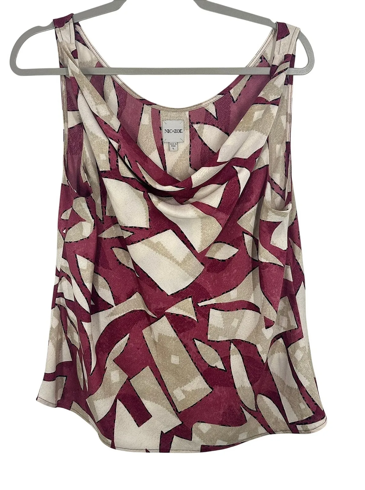 Nic+Zoe Burgundy Shadow Blocks Print Shell Cowl Neck Sleeveless Career Feminine Women's Size Large P... Show more