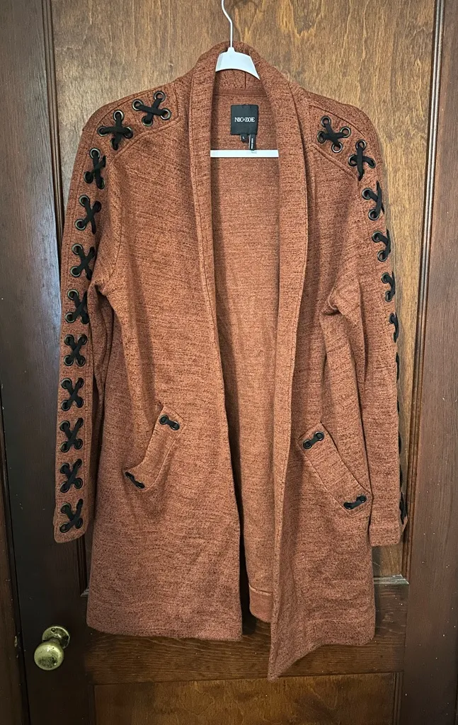 NIC+ZOE burnt orange cardigan sweater with lace-up detail size L Size L - $43 - From Lauren