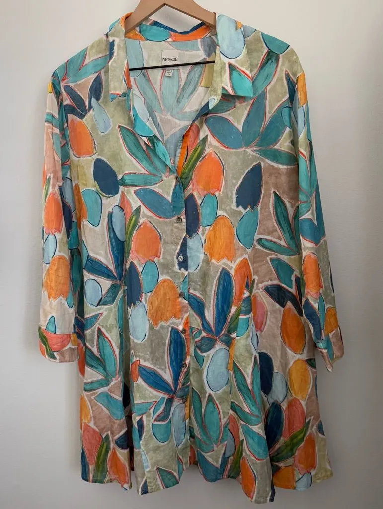 Nic + Zoe 1X Citrus Grove Watercolor Long Sleeve Shirt Resort Colorful Cotton Orange - $25 - From Most