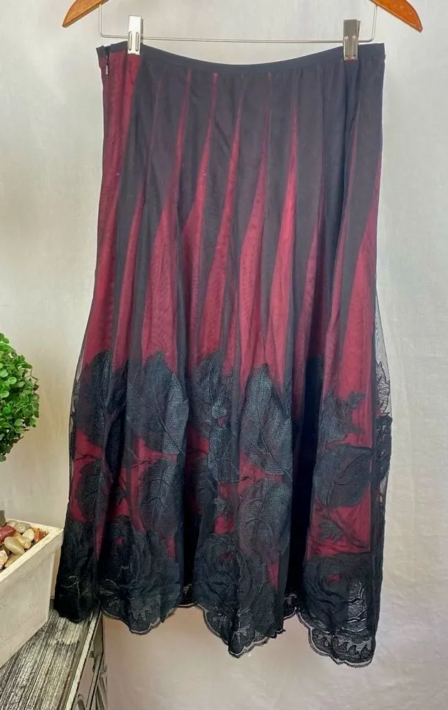 Nic + Zoe Black & Red Tulle Floral Embroidered A Line Midi Skirt 10 - $40 - From Designer