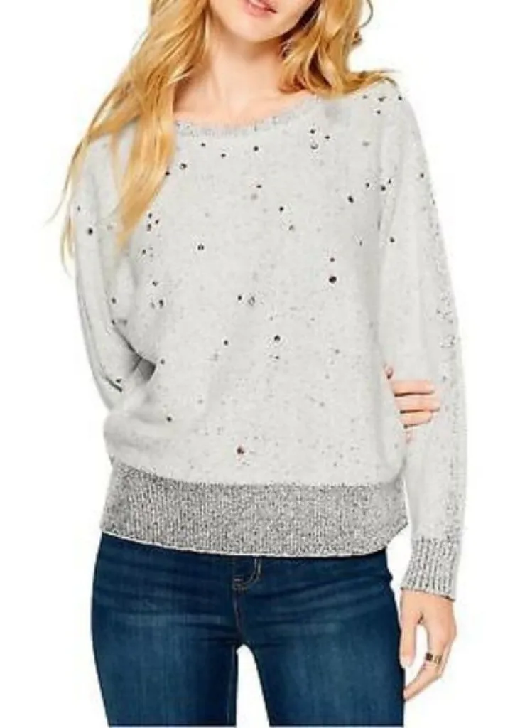 Nic + Zoe size XL gray Falling Stars sweater. kimono style sleeves. embellished details. loose fit. excellent like new condition. This elegant gray sweater features subtle embellishments for a touch of sophistication. Perfect for any occasion, it offers both comfort and style.
