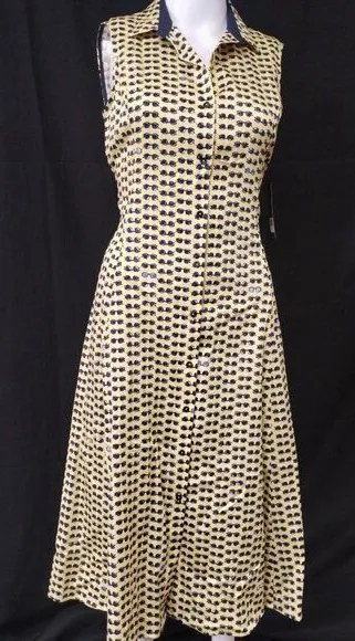 Offers a sleeve less fit and flare style dress with back strap, button down style, and glasses print design all around. Measurements are in the picture and length estimate is 45 inches. Excellent condition: pre-owned, unused, and still with tags. This item has been cleaned, sanitized and deodorized. Features: • Dress/Midi Size: Womens XS Condition: Pre-Owned Like New