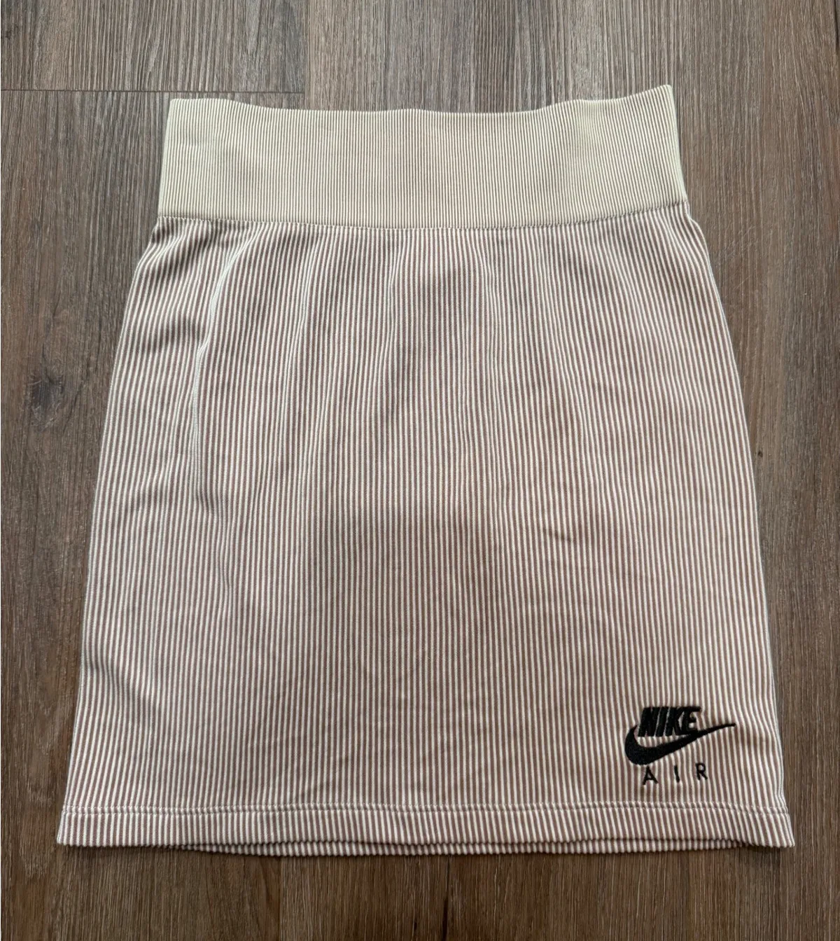 Nike Air knit mini skirt in tan and brown stripes. This stylish skirt features a comfortable elastic... Show more