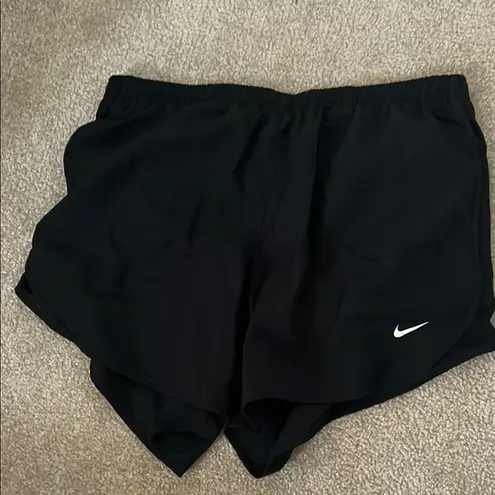 Comfortable black athletic shorts with a sleek design. Features the iconic Nike logo. Never worn