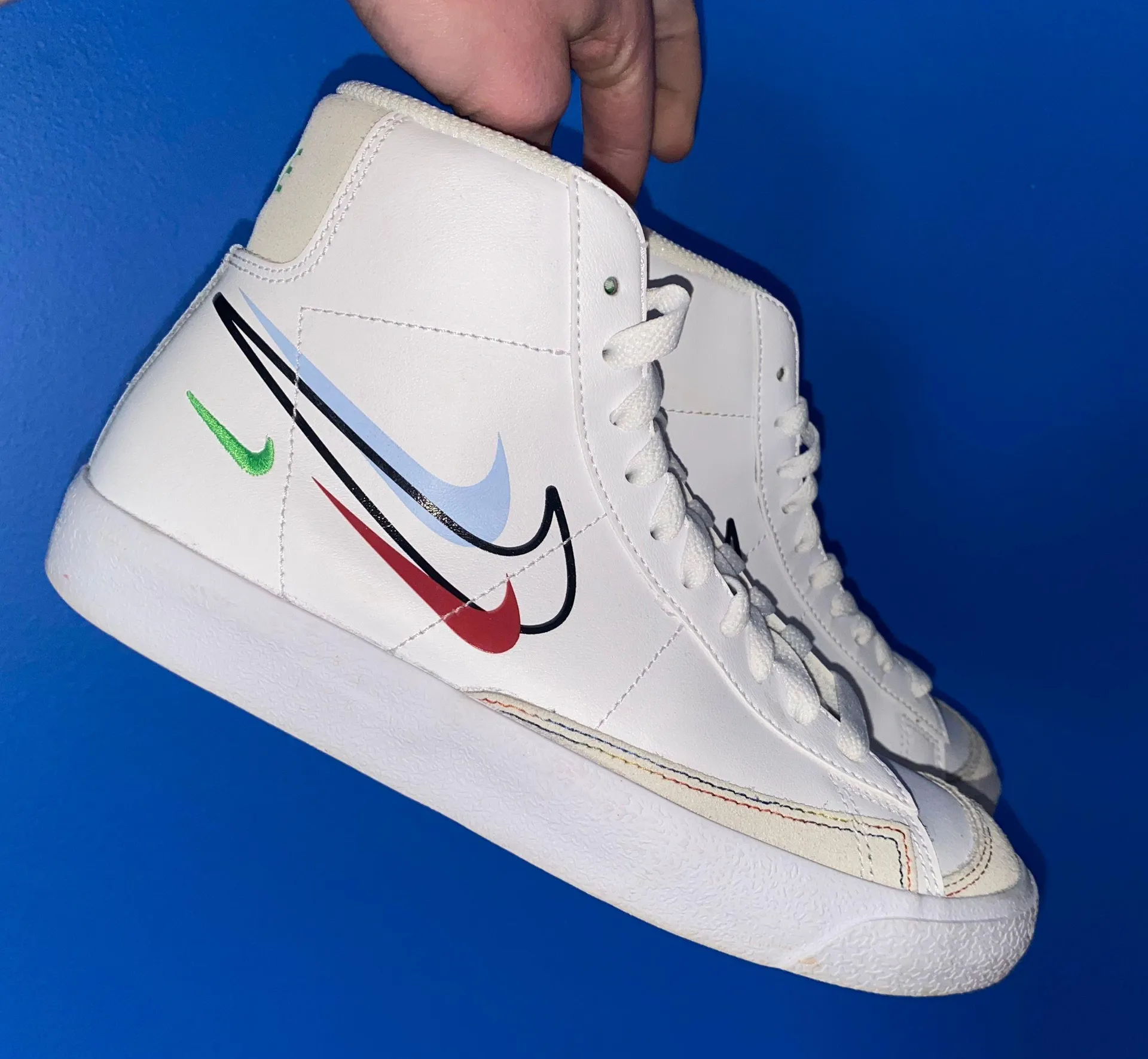 Nike blazers, boys size 5 youth= 7 in Womens. They’ve been worn once, they were too small for me. Th... Show more