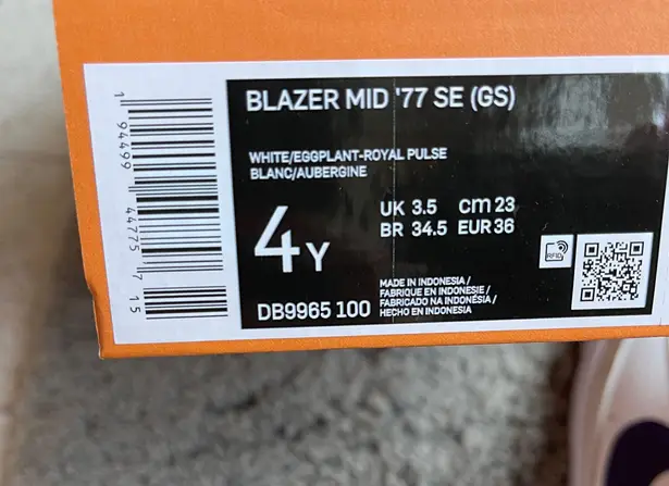 New shoes without the box. Shoes is youth size 4Y and fit Womens size 5.5. The nike logo is purple c... Show more