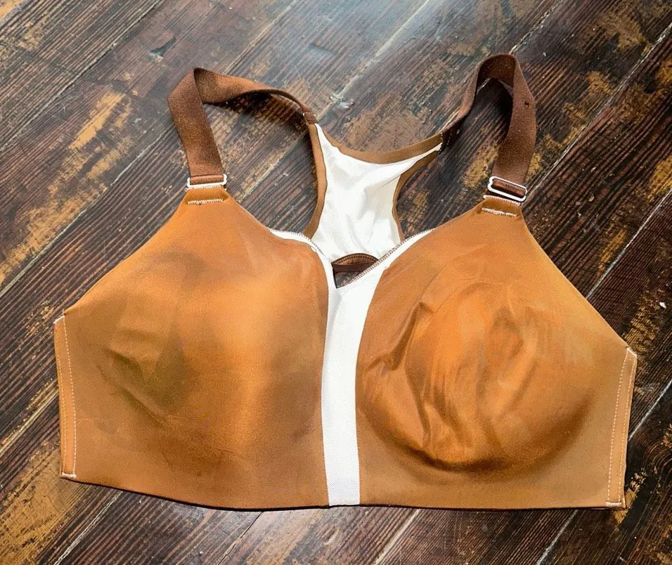 Nike brown, upcycled, wireless, high impact athletic/workout sports bra. In good, used condition. Th... Show more