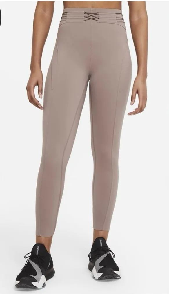 Nike City Ready Tight Fit 7/8 Training Tights Mauve Taupe High waistband with elastic cords for a m... Show more