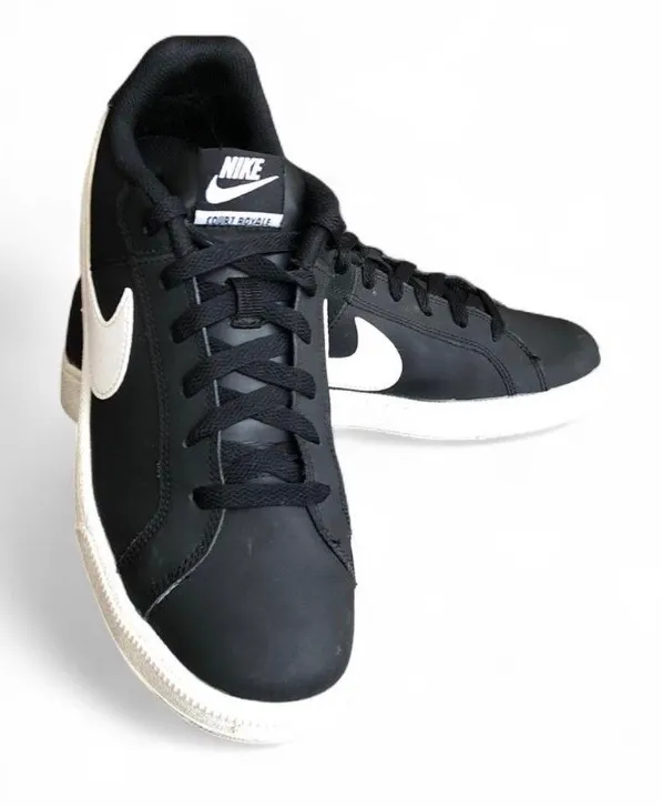 The Nike Court Royale Women's Shoes in size 10 are black and white athletic sneakers with a lace-up... Show more