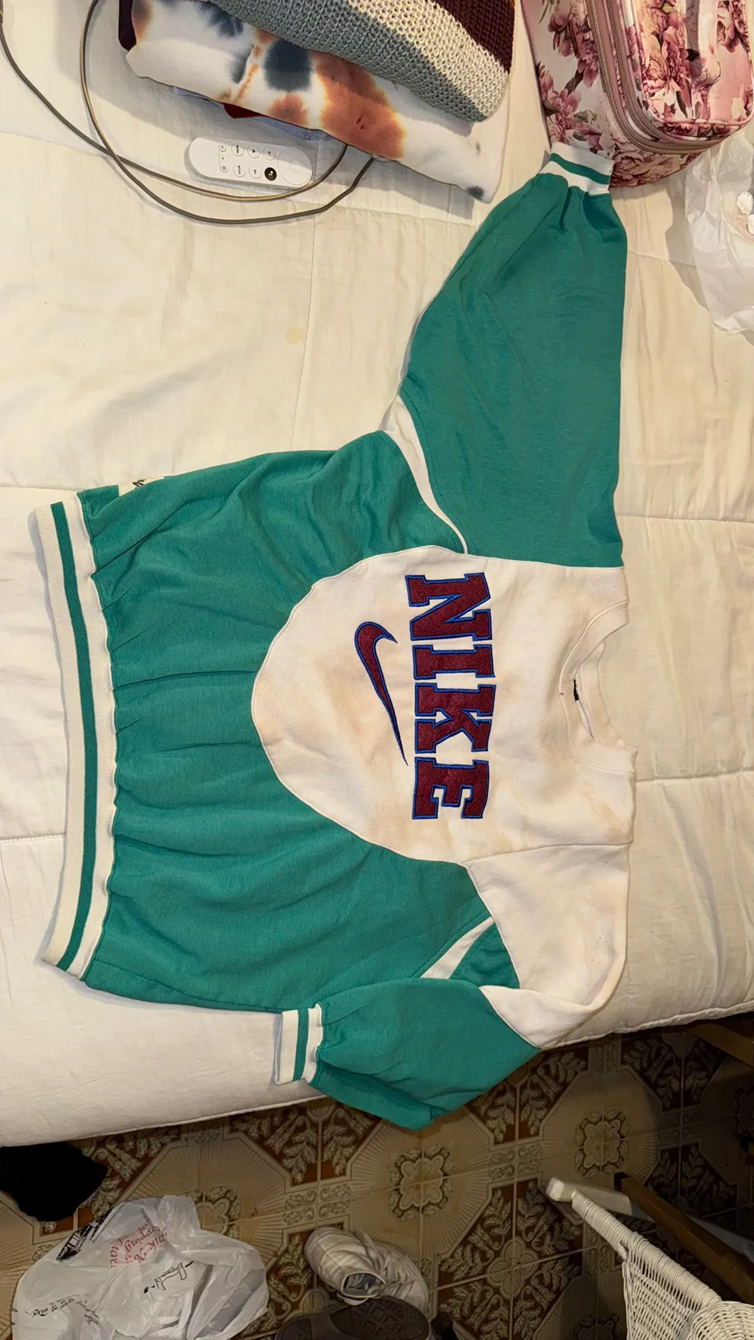 Bought at a boutique. Handmade piece with repurposed materials. One of a kind.