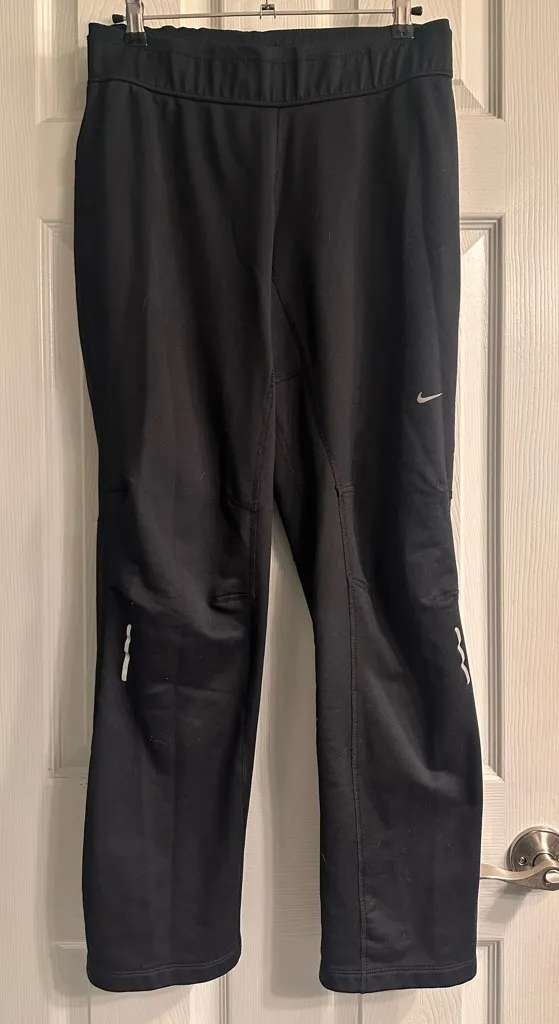 Sleek black pants with Dri-FIT technology. Ideal for workouts. Features Nike logo.