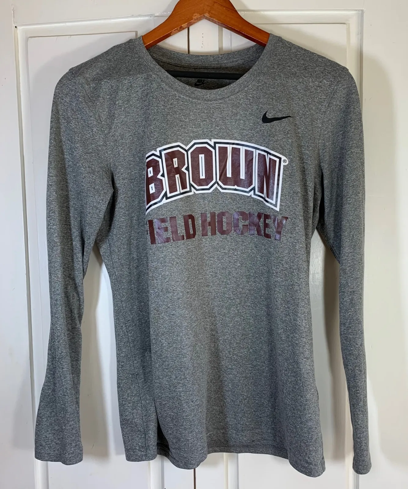 Keywords: Nike, Dri-FIT, Long Sleeve, Tee Shirt, Brown University, Field Hockey, Gray, Athletic, Workout, Sports, Women's, Medium, T Shirt, Team Spirit, College Apparel