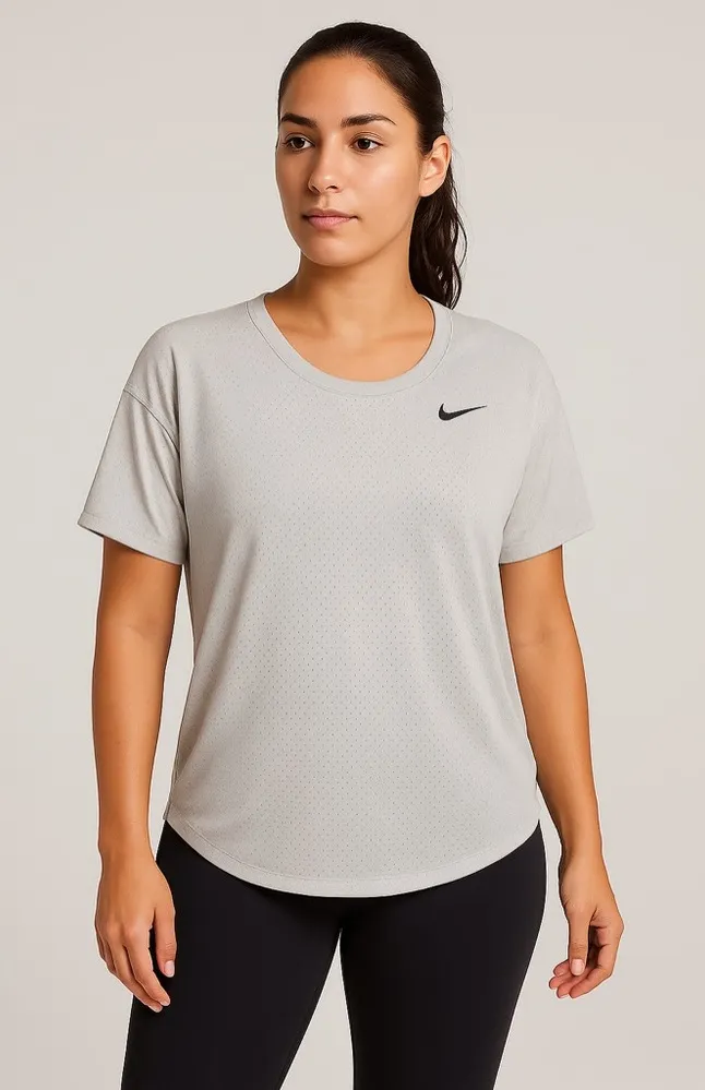 Stay cool and dry with this Nike Dri-FIT perforated tee in light gray. Designed with breathable micr... Show more