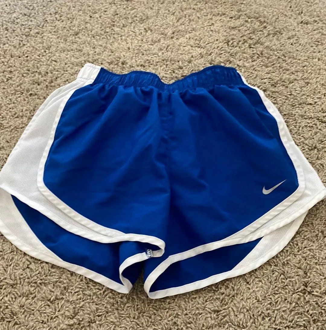 Nike dri fit shorts! Size S Royal blue and white ( there is a mark from a name sticker from kamp)... Show more