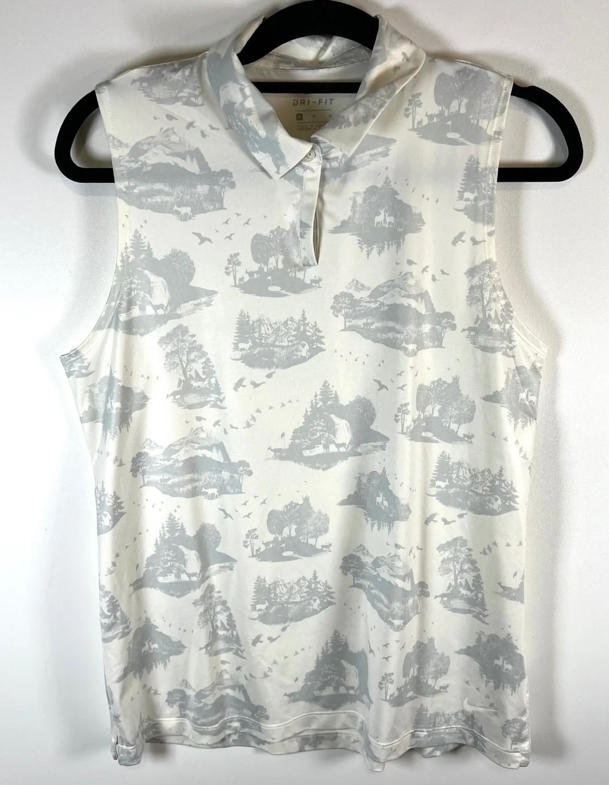 Embrace the outdoors with this stunning Nike Dri-FIT sleeveless golf polo. The captivating all-over... Show more