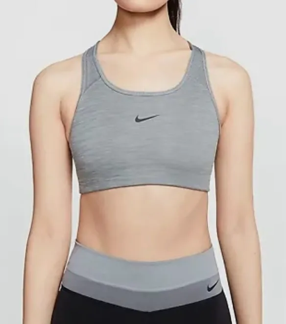 Nike women’s size XS athletic bra. Top features an 82/18 recycled poly/spandex blend fabric in Smoke... Show more