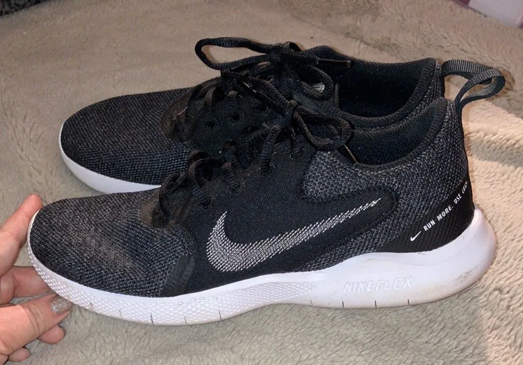 Nike Flex Running Sneakers Size 8 Black DESIGN: Knit upper has mesh for a clean look and provides... Show more