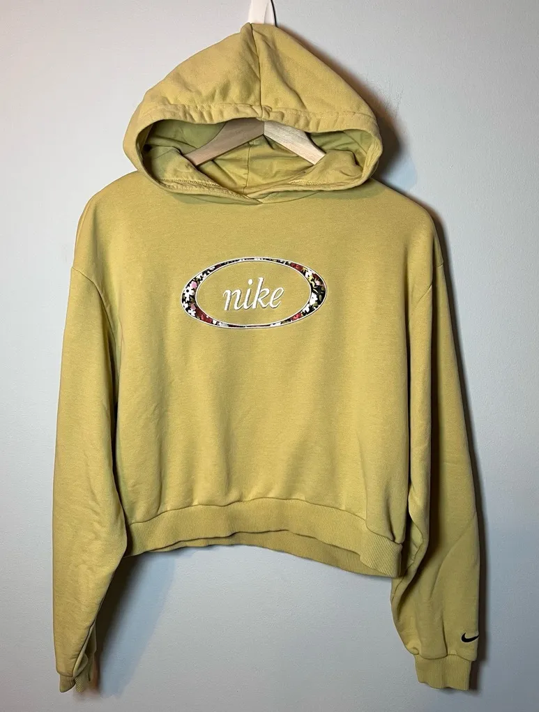 NIKE Floral Embroidered Logo Cropped Hoodie Women’s M Tree Mist Green Lightweight Tagged: medium pi... Show more