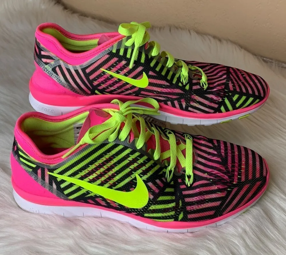 VGUC. Nike Free Tr Fit 5 Pink Pow/Volt Black Athletic Shoes Size 7 D&B