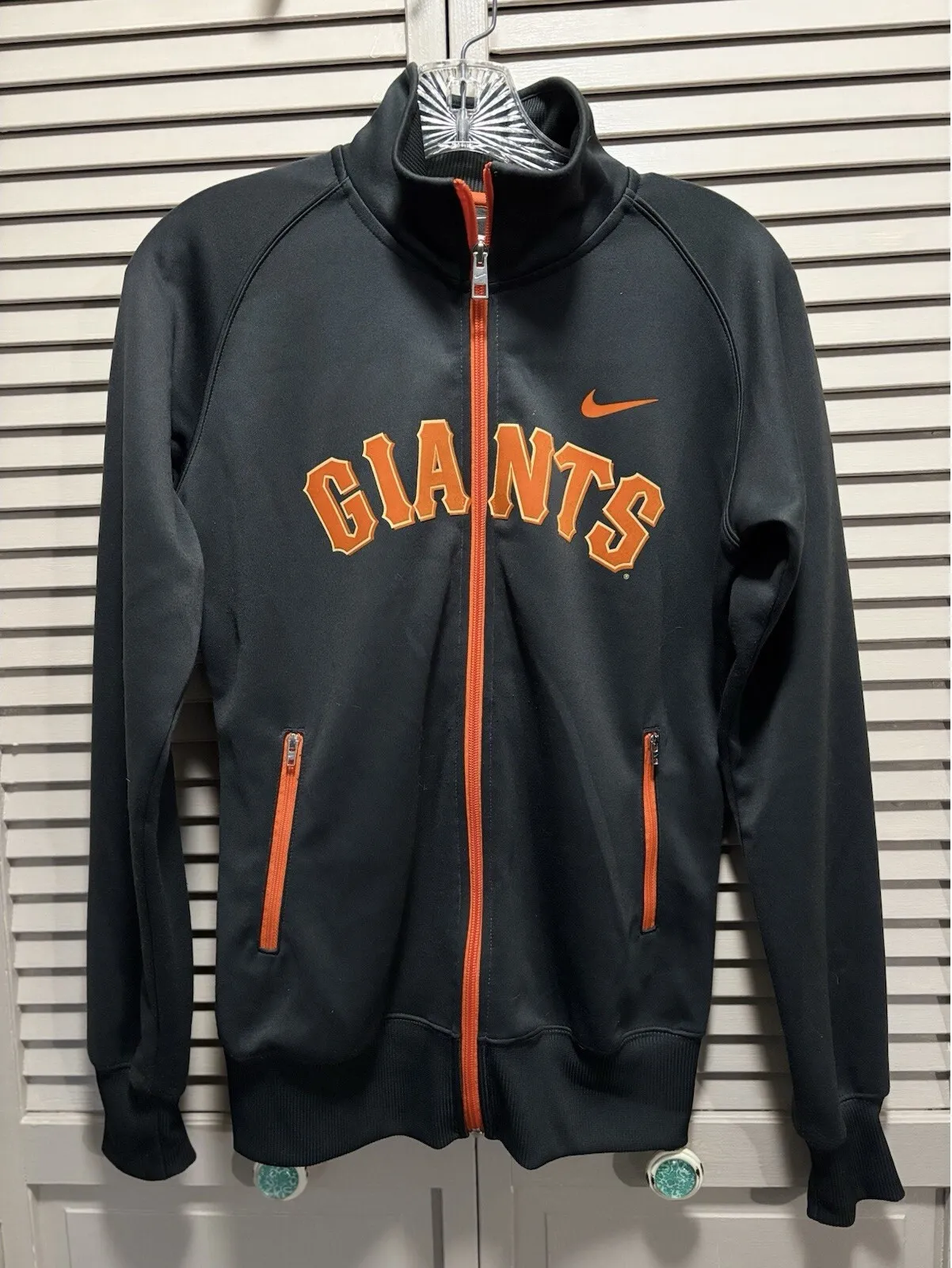 Show your support for the San Francisco Giants with this authentic Nike zip-up jacket. The gray and... Show more