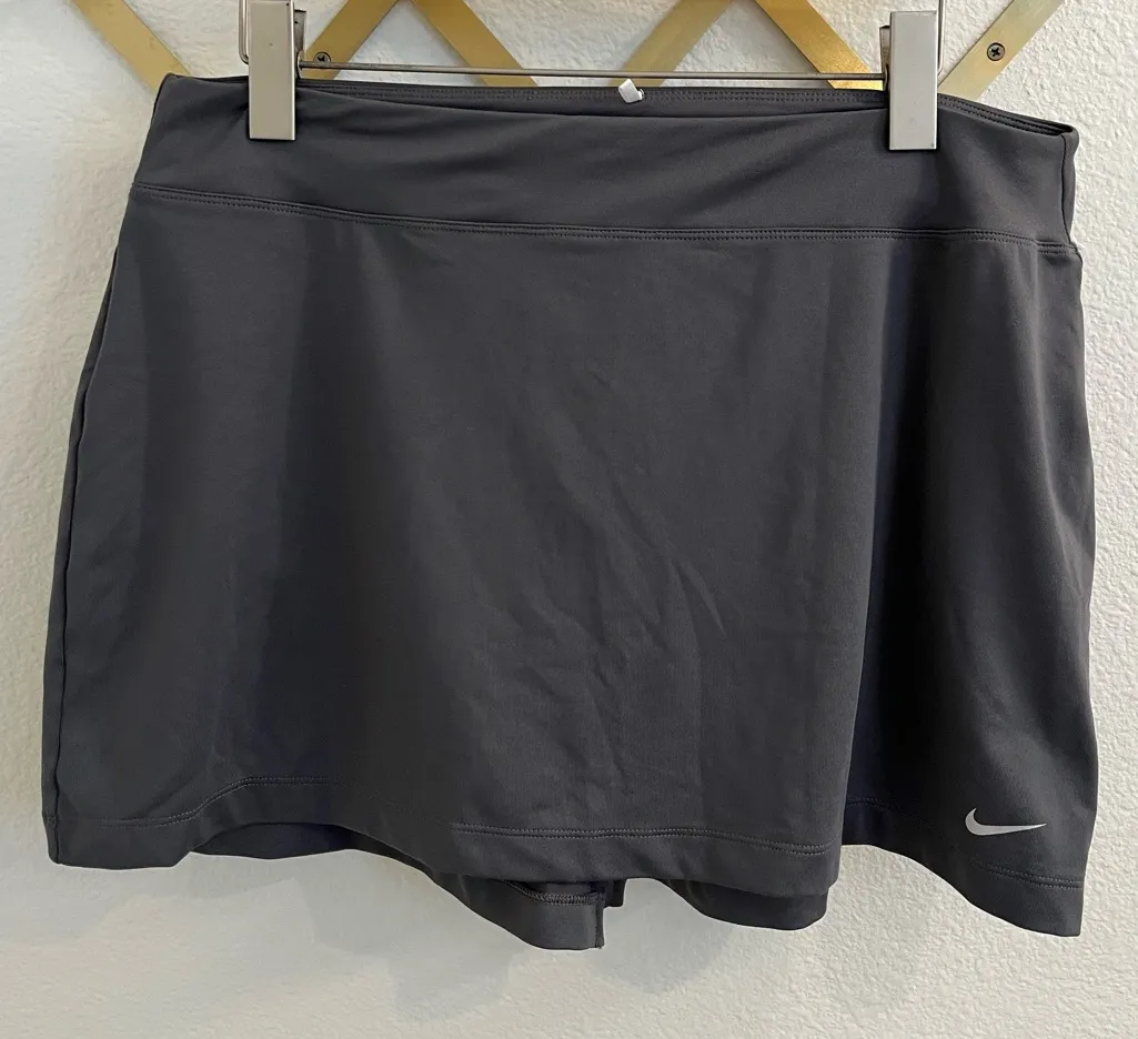 . Nike golf skirt, color is a dark grey. Back zipper pocket, back middle pleat for movement. Gently... Show more