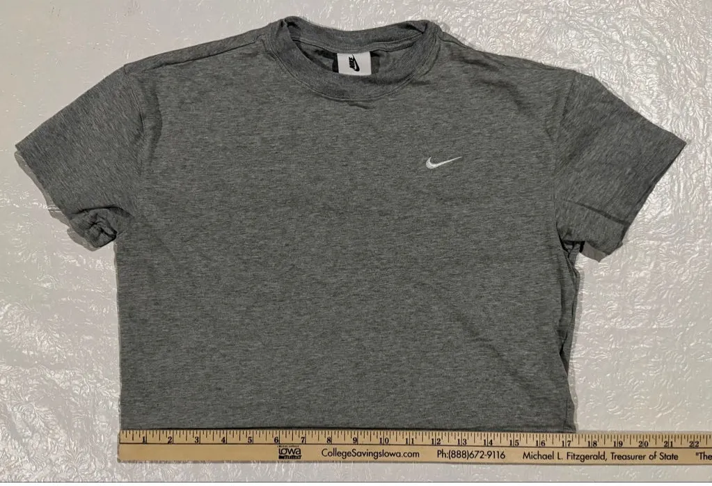 Classic and versatile Nike embroidered Swoosh T-shirt in heather gray. Made from 100% cotton with a... Show more