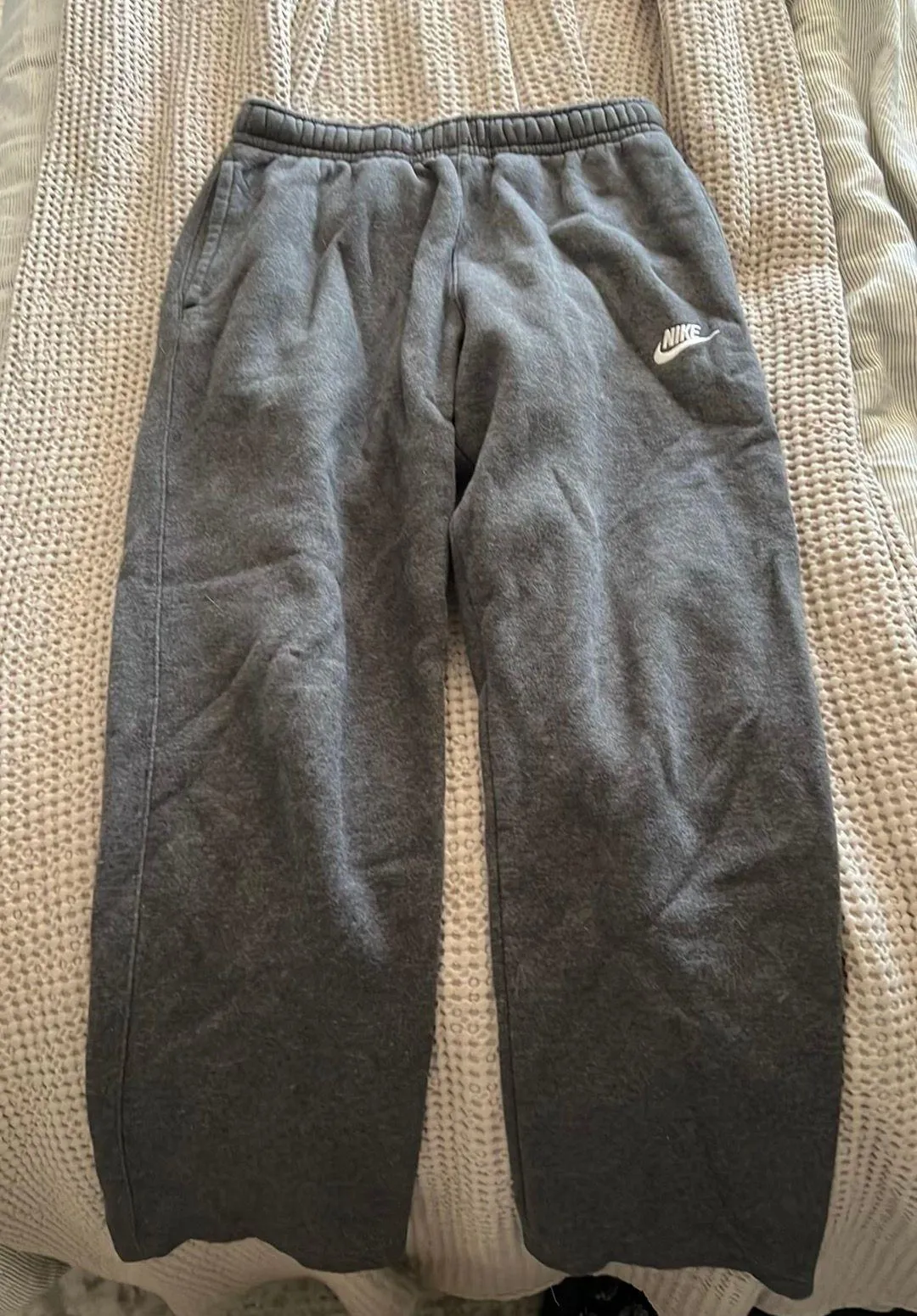 Gray Nike sweatpants. Great condition, worn only a couple times. Has pockets and a back pocket. Very... Show more