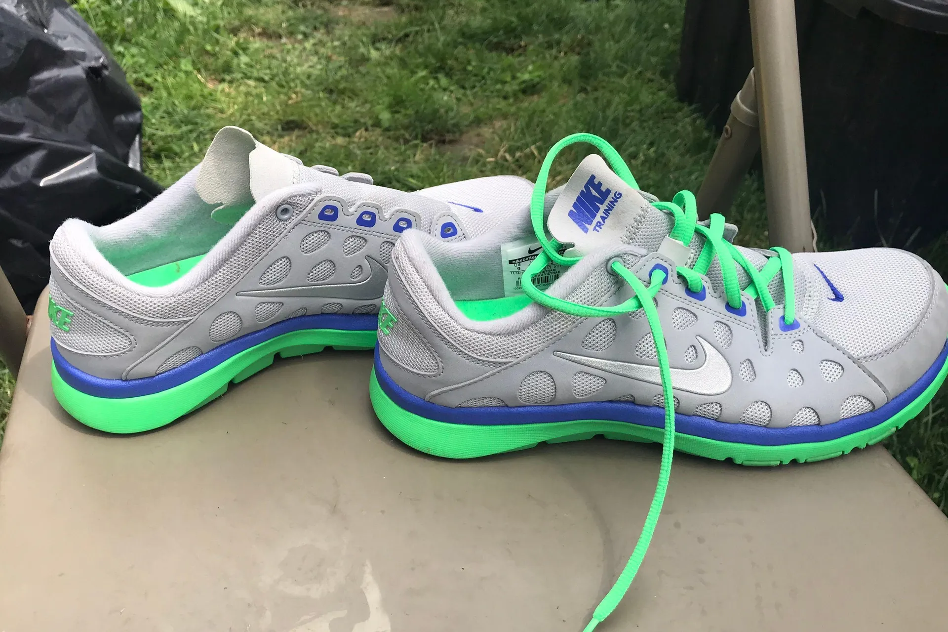 In really good conditions/ barely worn. One shoe is missing a green shoelace!!! Size 9