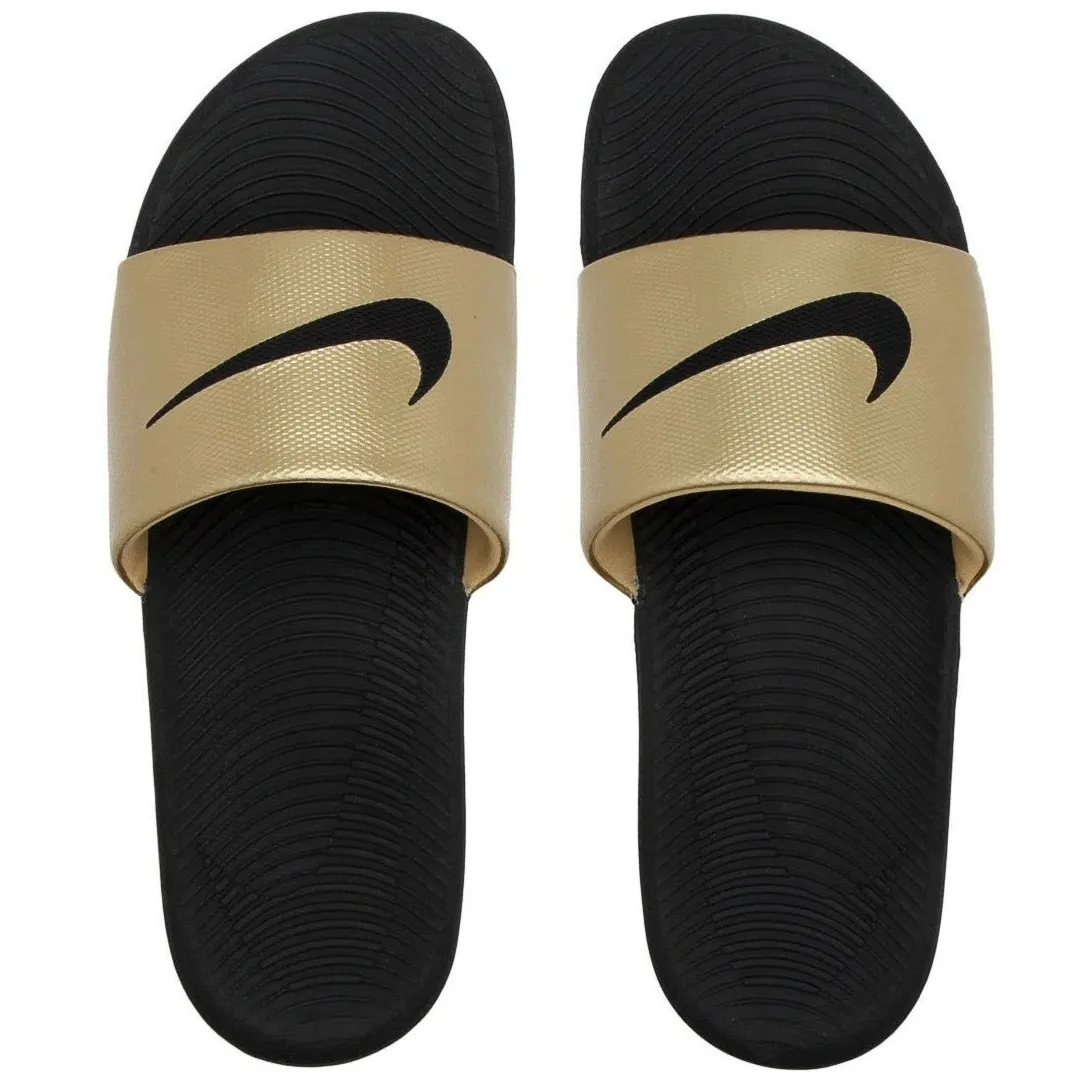 Nike Kawa Slides women’s slip on sandals size 7 black gold lightweight comfortable Nike Kawa Slides... Show more