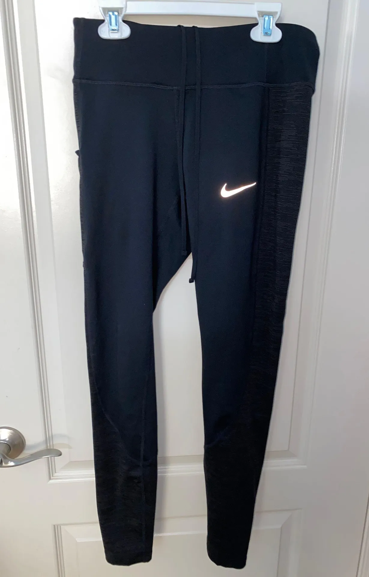 Black with heather grey accents Tie Waist Nike Leggings for running Size Small Side pocket back zi... Show more