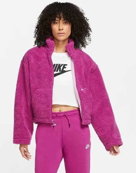 Nike Cropped Sherpa Jacket Size medium med M fits 4-8 Loose oversized fit Cropped jacket style... Show more