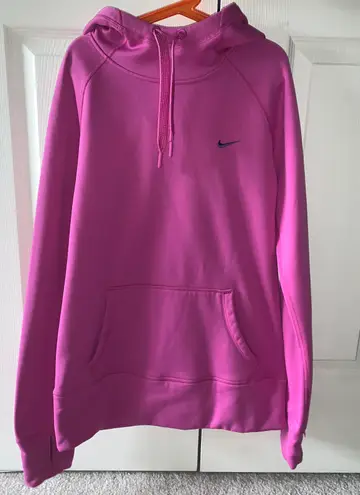 Pink nike sweatshirt with hood and thumb holes. In great condition. Therma-fit material