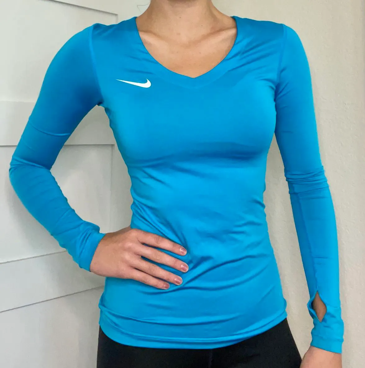 Light blue Nike Pro athletic top. Brand new condition. Fitted. Stretchy, cool fabric. No flaws.