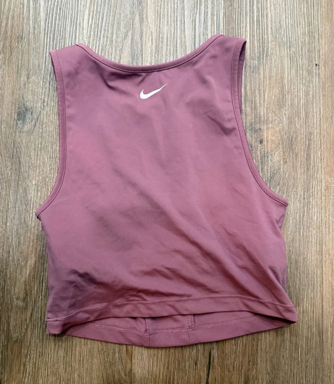 Nike Pro Dri Fit cropped athletic tank top in a dusty rose hue. This sleeveless top features a racer... Show more
