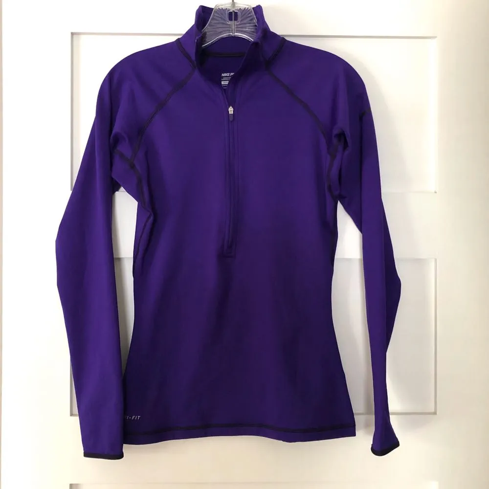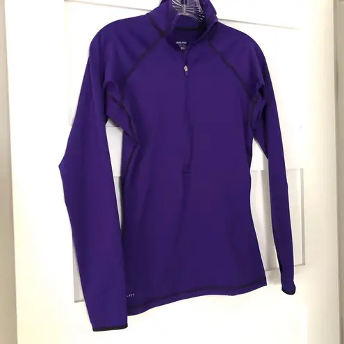 Vibrant dark purple Black stitching and shoulder logo 1/2 zip style Fleece lined Size small In like... Show more