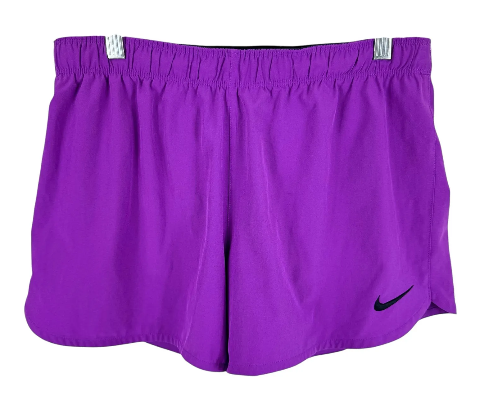 Excellent preowned condition. Nike Purple Elastic Waist Lightweight Athletic Short with Stretchy Bla... Show more