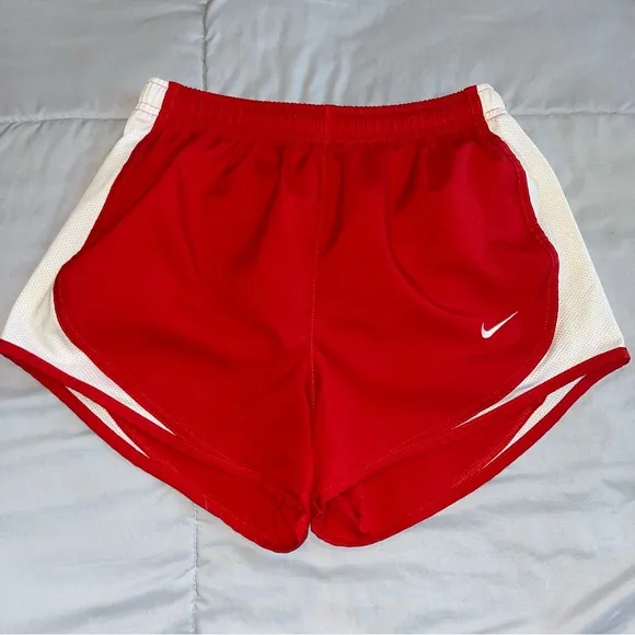 NIKE red & white tempo shorts, adult size XS, lined, good condition 9/23 GT232 HT
